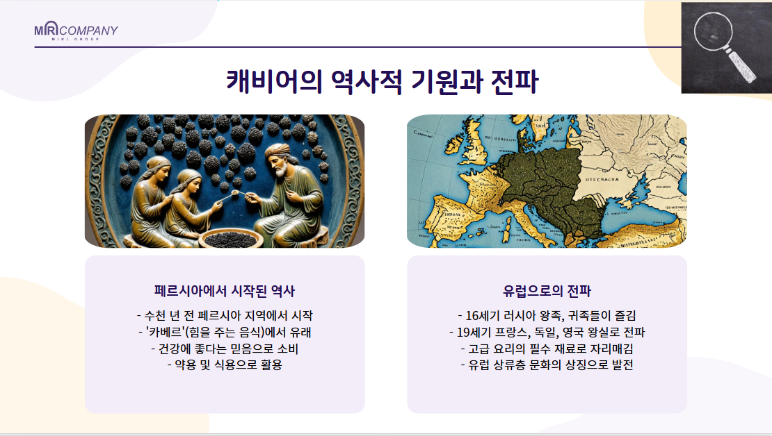 캐비어의 역사는 수천 년 전 지금의 이란지역인 '페르시아'에서 처음 시작되었습니다.